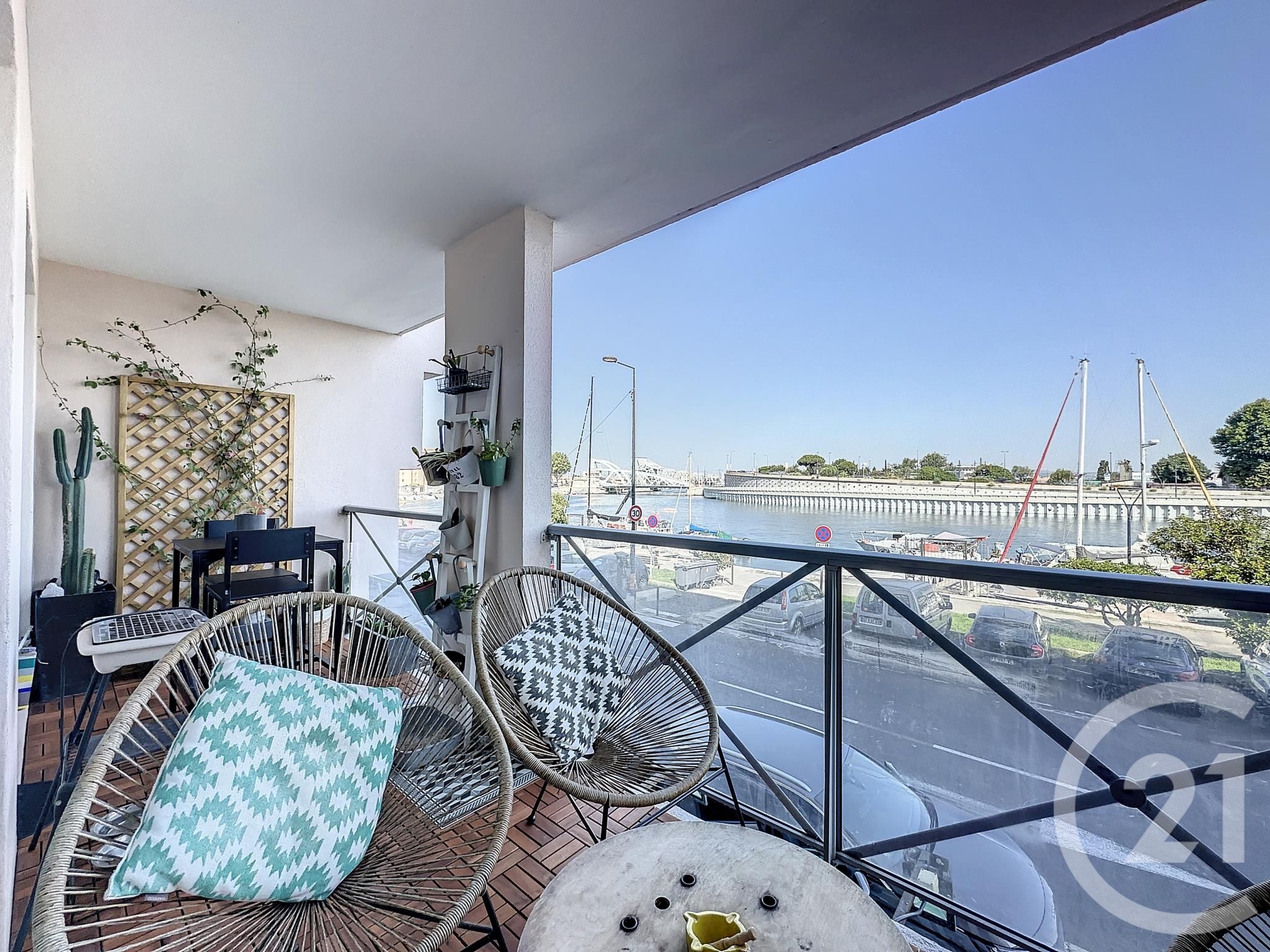 Bien rare sur Sète, quartier Gare, appartement T3 traversant avec vue sur quai au premier étage d'une copropriété de standing avec ascenseur comprenant une belle pièce de vie donnant sur la terrasse avec vue sur le quai, deux chambres donnant sur la loggia, wc, salle d'eau.